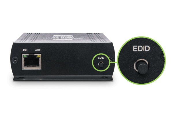 HE03-4K 支援 EDID 功能,您可以透過 R 端按鍵設定,讓您的來源端自動依據顯示器的最高解析度調整輸出。