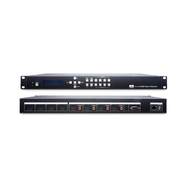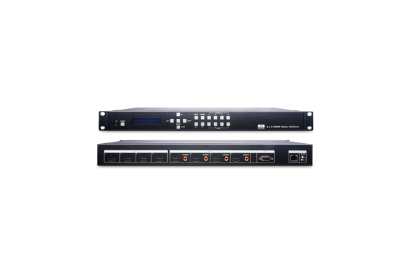 HS04M-4K6G為4進4出真4K HDMI矩陣切換器,可將4個HDMI訊號源與4個HDMI顯示器整合,並支援現今主流的超高清解析度4K@60Hz 4:4:4,讓視覺體驗大幅提升。此矩陣切換器還具有聲音提取功能,可透過S/PDIF音源輸出連至外部的音源設備,讓您的影音設備都能夠與HS04M-4K6G完美整合。此設備可透過網頁瀏覽器、Android及iOS行動 APP、IR遙控器、RS232和前面板按鈕等多種方式輕鬆操控。