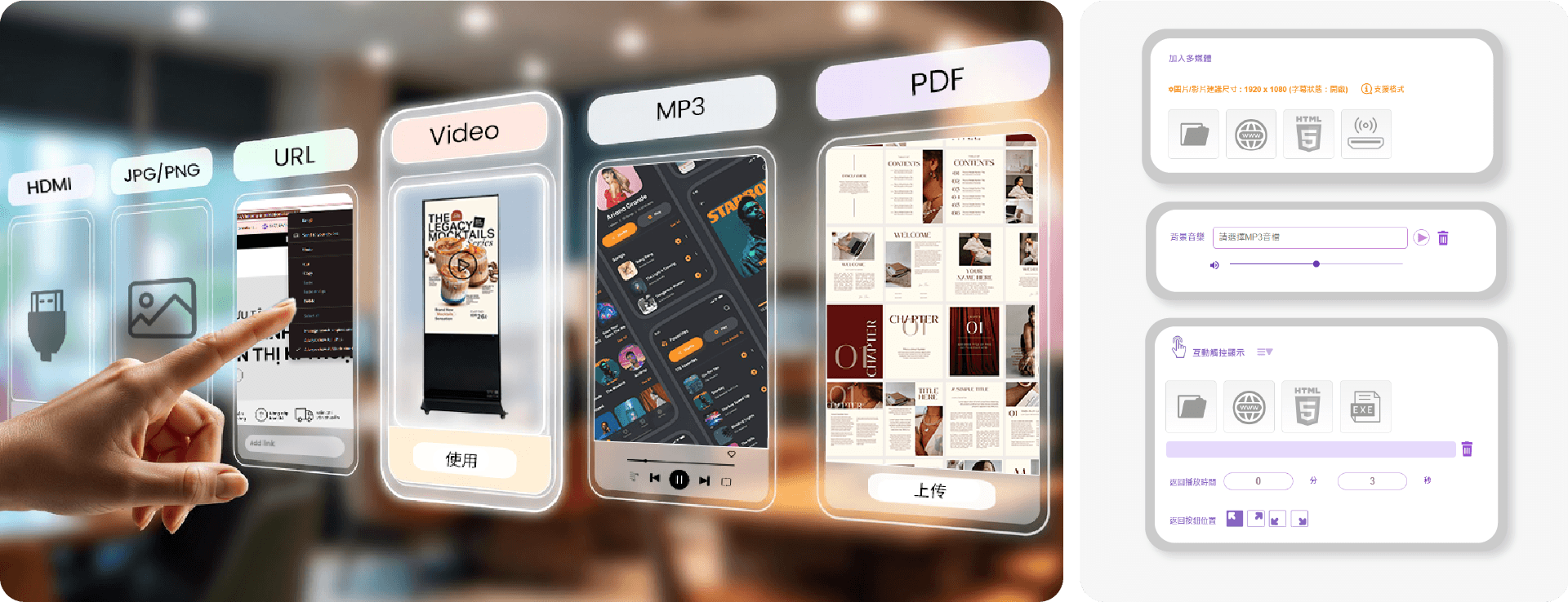 輕鬆將各類媒體轉化為生動吸睛的展示內容,有效吸引並打動顧客。