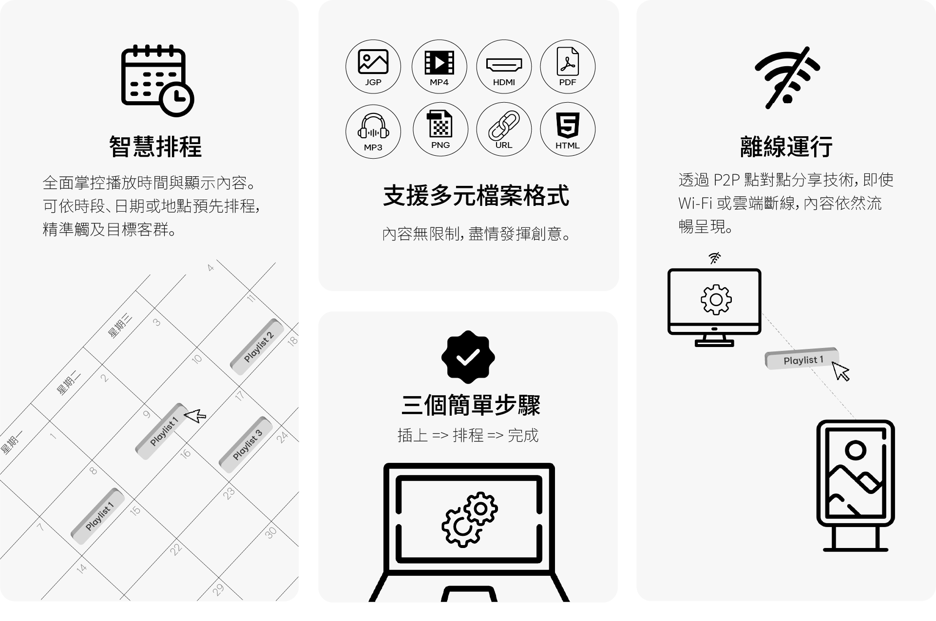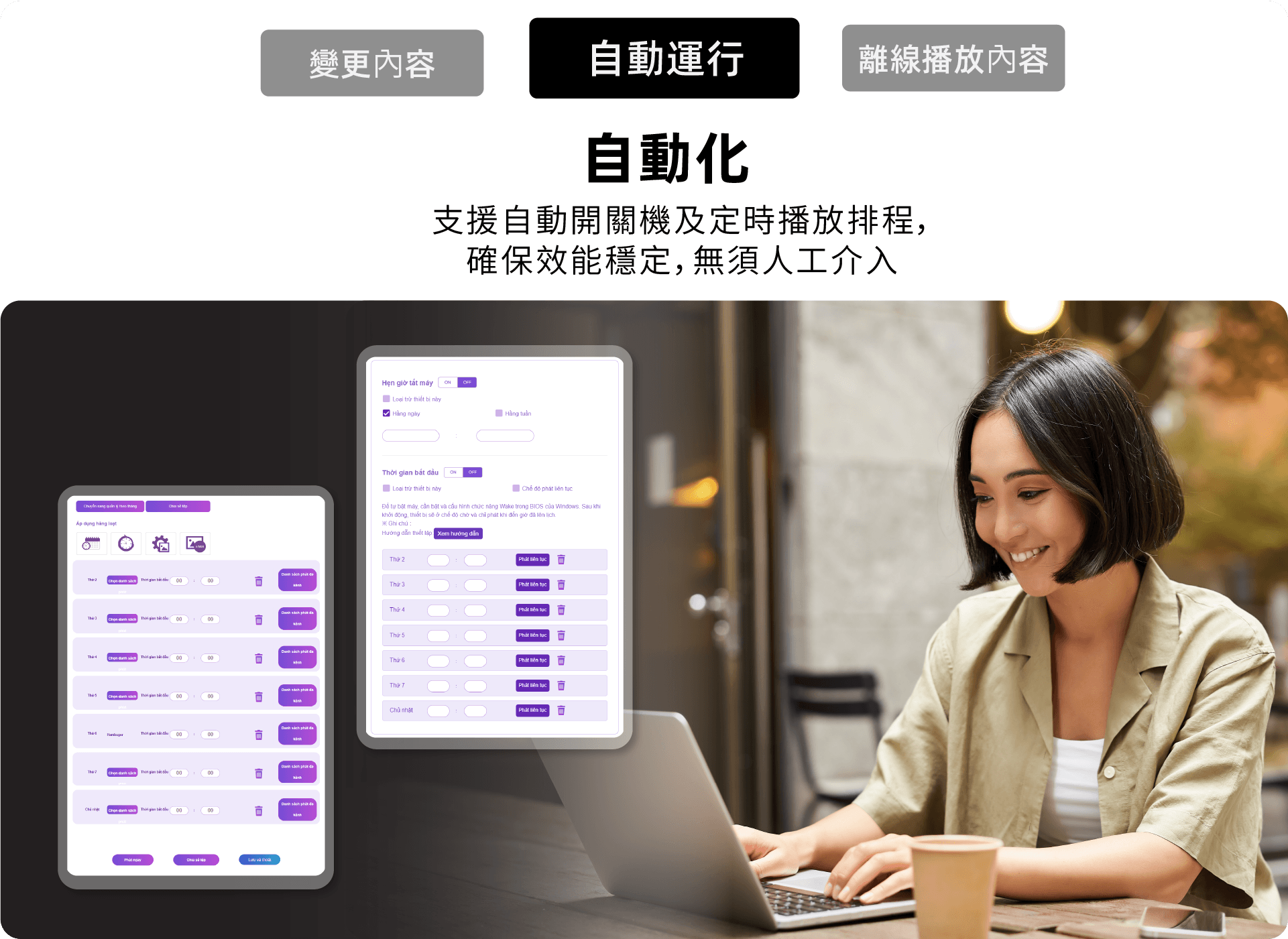 靈活版面配置與高效排程管理。