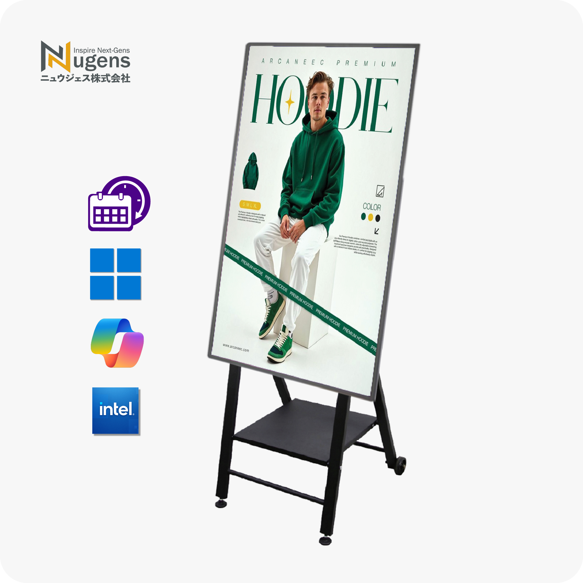 Nugens好好播 55吋系統型 超薄廣告一體機 - A字畫架款 智慧數位廣告看板電子海報