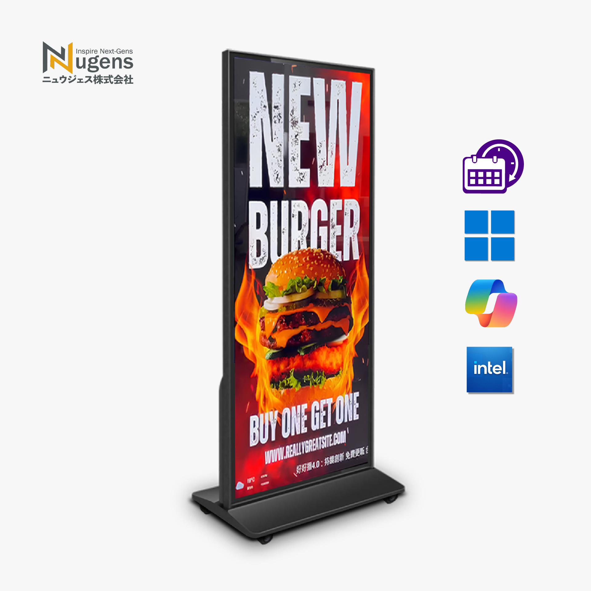 Nugens好好播 55吋鏡面落地款廣告一體機 智慧數位廣告看板電子海報