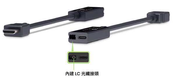 HE01FE-4K6G is an HDMI® extender that uses fiber optic cable with LC connection to transmit uncompressed 4K60Hz HDMI® signals.