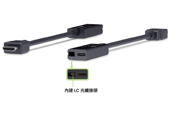 The LC connector is pre-installed, requiring only an LC multi-mode fiber cable to connect the transmitter and receiver.