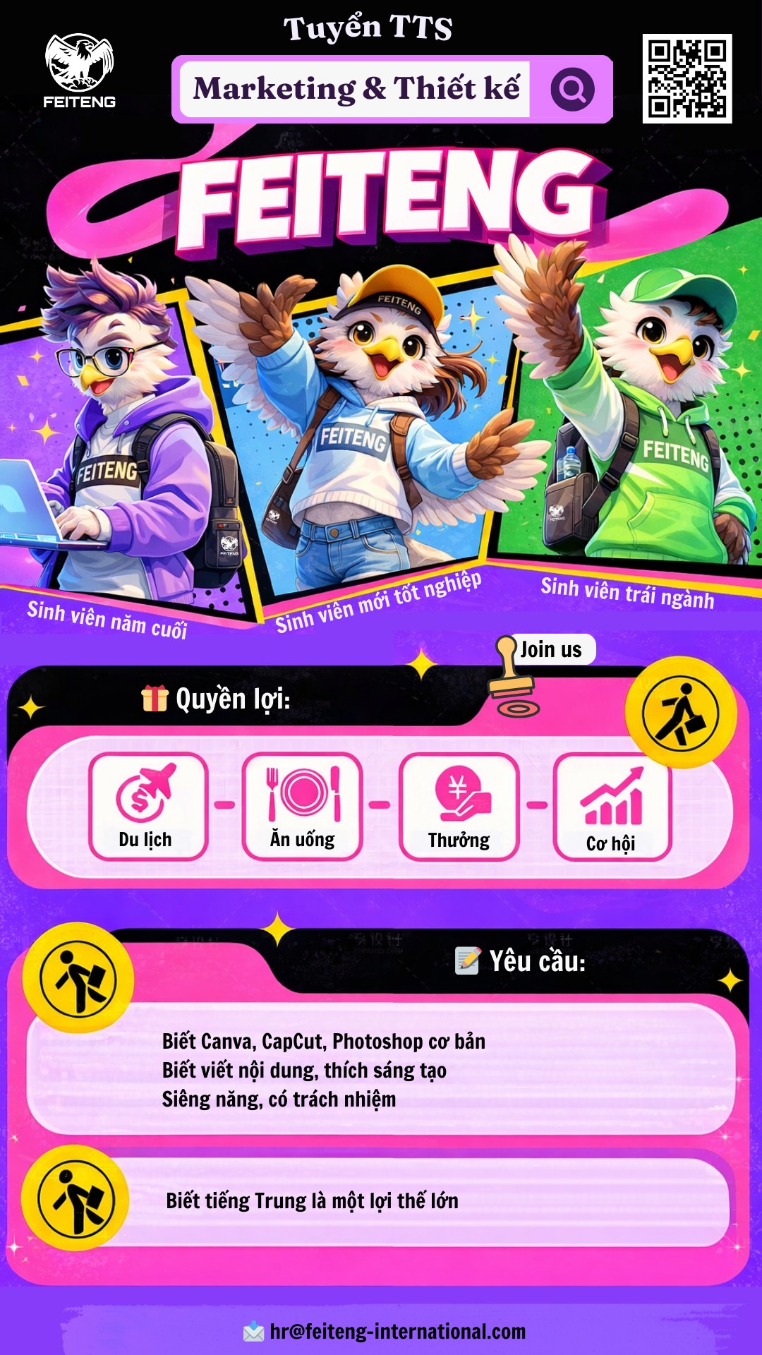 Please send your CV and portfolio (if available) to: hr@feiteng-international.com
