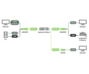 HKM01E supports transmission up to 490 ft (150m) to 525 ft (160m) over a single CAT5e or above cable. Using 1 Gbps network transmission, it provides sharper video with lower latency compared to H.264 or H.265 compression, ensuring smooth and responsive remote operation.