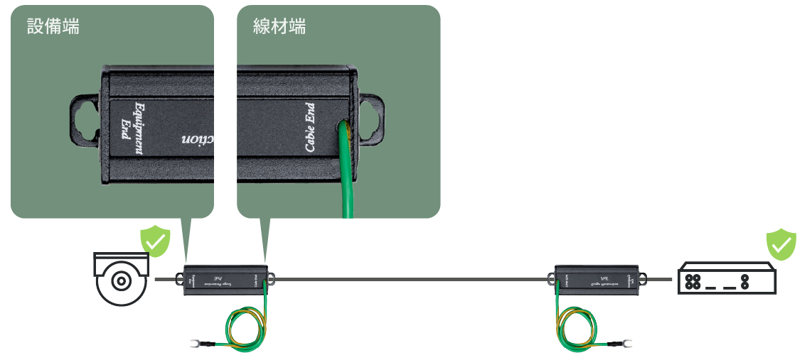 A surge protector can only protect surges from one side. If you only install one surge protector, your equipment is still threatened by surges from the other side. Please make sure to install surge protectors on both sides of the equipment.