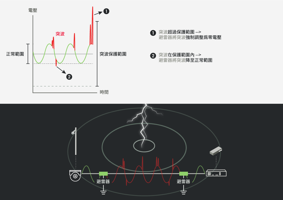 Within less than 1ns, the SP006P surge protector detects and responds to lightning to protect your equipment.