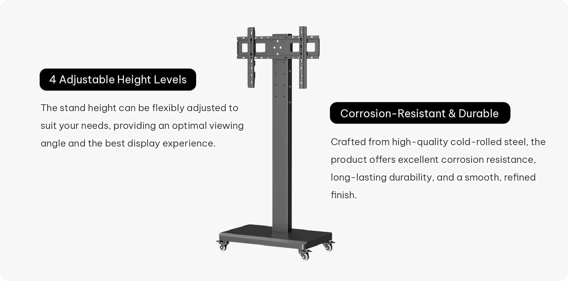 Integrated cable management keeps wires concealed for a clean, modern look.