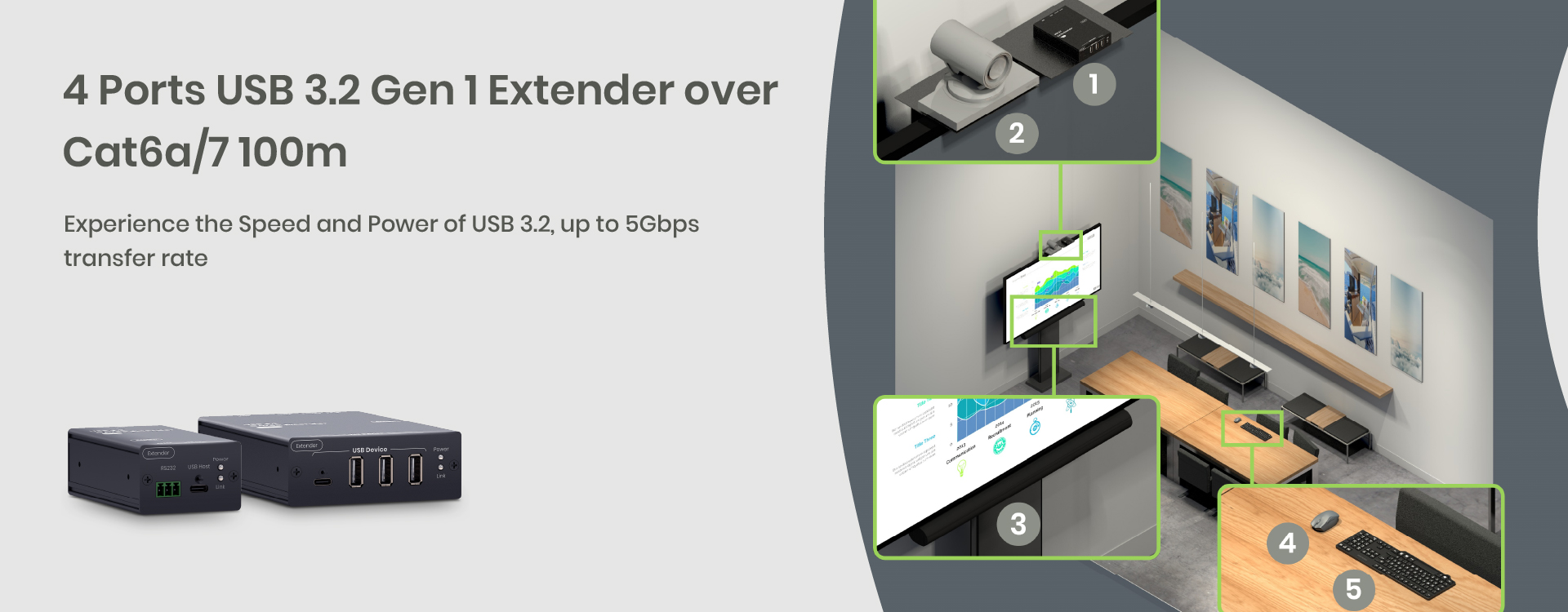 Bộ mở rộng USB qua CAT6a/7 chuẩn HDBaseT