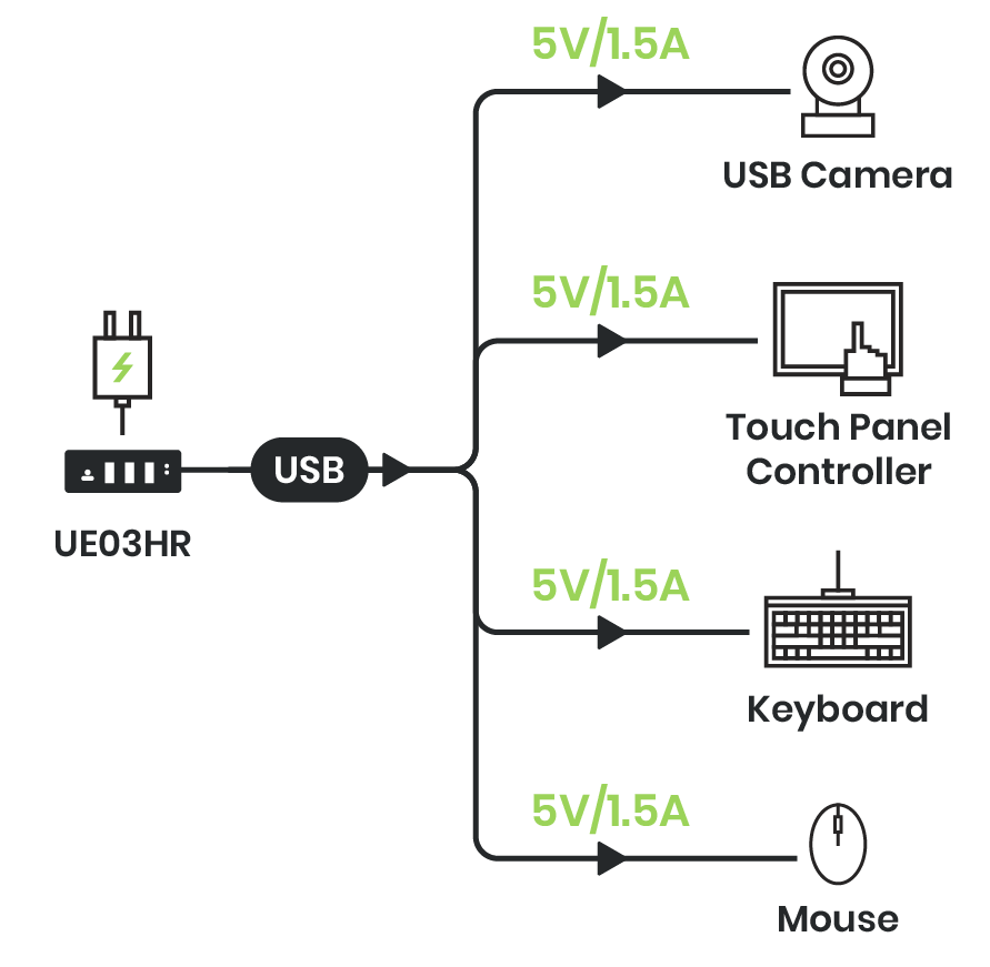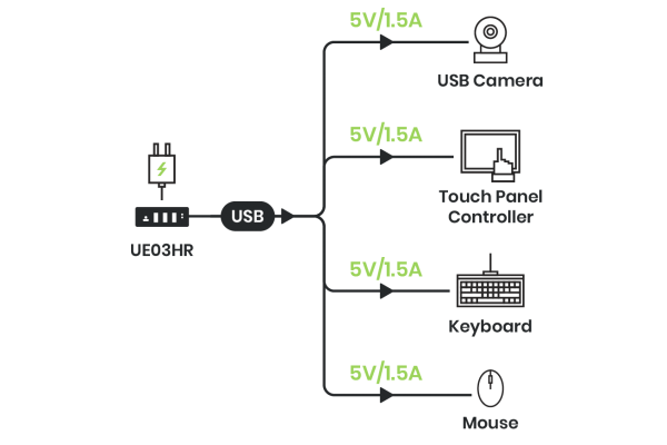 UE03H là bộ mở rộng USB 3.2 Gen 1, được thiết kế để truyền tín hiệu USB 3 với khoảng cách lên đến 100m thông qua cáp mạng Cat6a/7. Thiết bị hoàn toàn tương thích ngược với các thiết bị USB 2.0 và USB 1.0. UE03H rất phù hợp cho nhiều ứng dụng khác nhau, bao gồm các thiết bị như camera USB, màn hình cảm ứng, và mọi thiết bị sử dụng chuẩn USB 3, USB 2 hoặc USB 1.