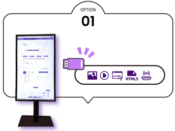 - Nhập nội dung qua USB, - Thiết lập bố cục và lịch phát. - Cắm USB, nội dung tự động cập nhật lên máy * Nội dung vẫn phát ngay cả khi rút USB |