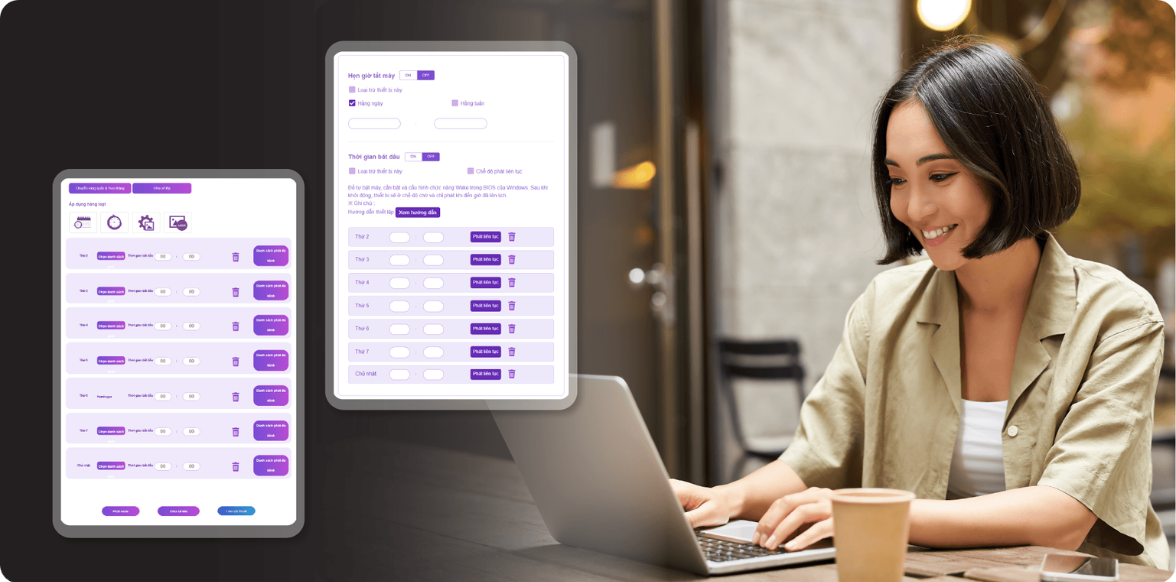 Khi mua sản phẩm, màn hình đã được tích hợp sẵn phần mềm SmartScheduler với bản quyền vĩnh viễn. Bạn không cần trả phí hàng tháng và được cập nhật phần mềm miễn phí liên tục (trong cùng phiên bản).