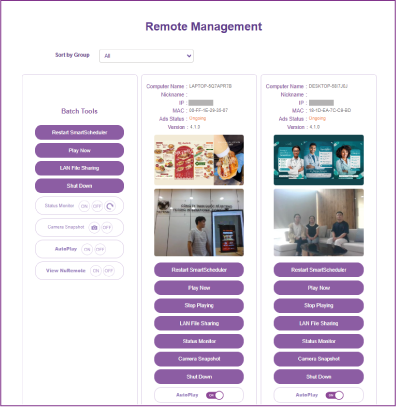 Tính năng quản lý cloud cho phép bạn điều khiển và quản lý hàng loạt hệ thống màn hình quảng cáo từ xa tại nhiều địa điểm khác nhau. Dễ dàng thực hiện các tác vụ như: