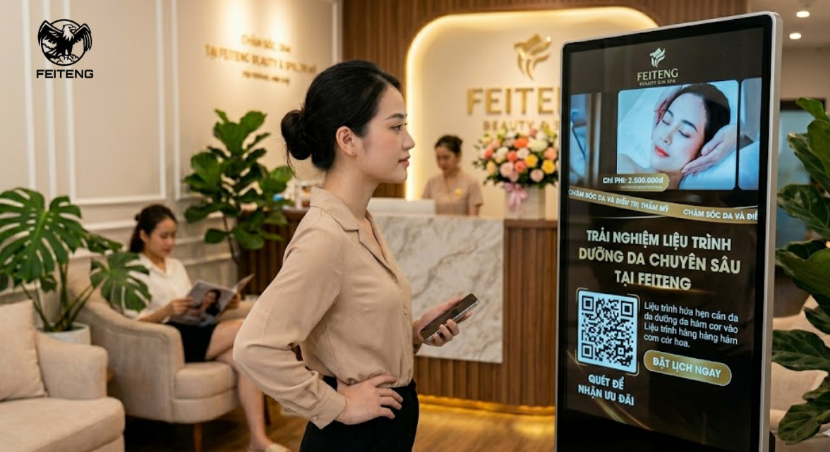 Màn hình quảng cáo (Digital Signage) đang trở thành giải pháp giúp spa thu hút khách ngay tại điểm chạm, tăng tỷ lệ sử dụng dịch vụ mà không cần tốn thêm chi phí marketing.
