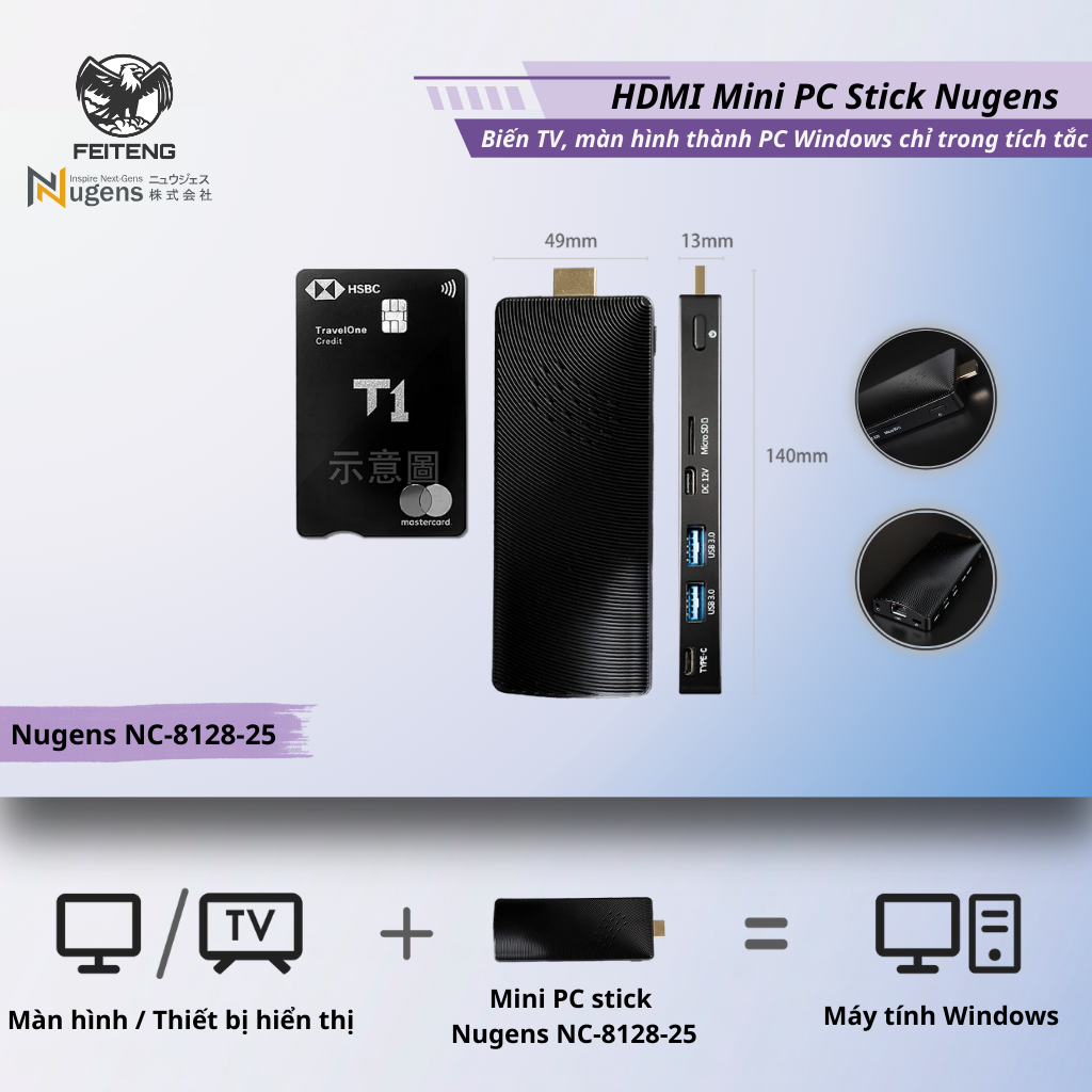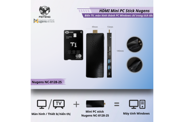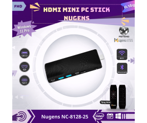 Nugens Mini PC Stick – Giải pháp máy tính siêu nhỏ gọn, cắm trực tiếp vào TV/màn hình qua HDMI, biến mọi màn hình thành PC Windows 11 Pro đầy đủ chức năng. Với CPU Intel® Celeron J4115 mạnh mẽ, RAM 8GB và bộ nhớ 128GB, thiết bị đáp ứng hoàn hảo nhu cầu làm việc văn phòng, phát đa phương tiện, giảng dạy, trình chiếu và quảng cáo số – mà không chiếm diện tích!