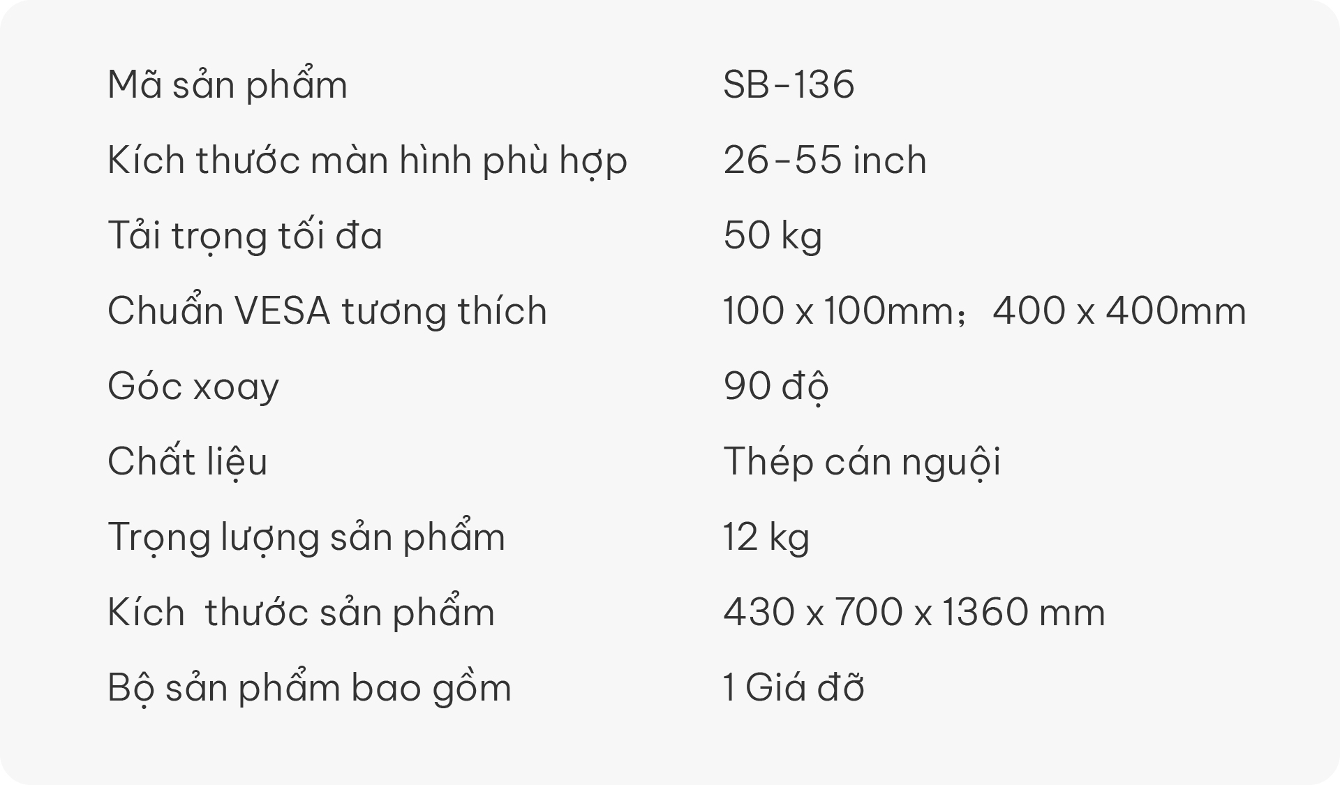 Khả năng chịu tải cao lên đến 50kg